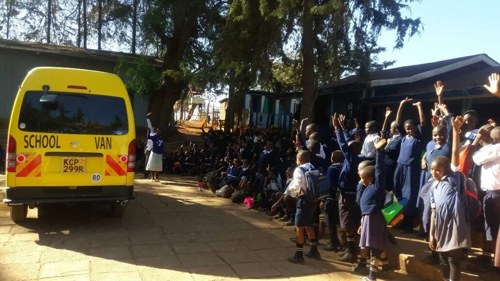 In February we were able to update our van which is vital to transporting students who live a distance away. The old van was breaking down frequently including blowing a head casket so we decided to semi-retire it and use it for only short runs. To replace the old van we purchased a 2010 model and painted it in order to comply with a new regulation starting March 31st that required all vehicles transporting students to be painted yellow. Below is the 2010 van we purchased in it's original look and then after it's new bright paint job. As shown in the pictures below the students were quite surprised when staff at PHA surprised them!
